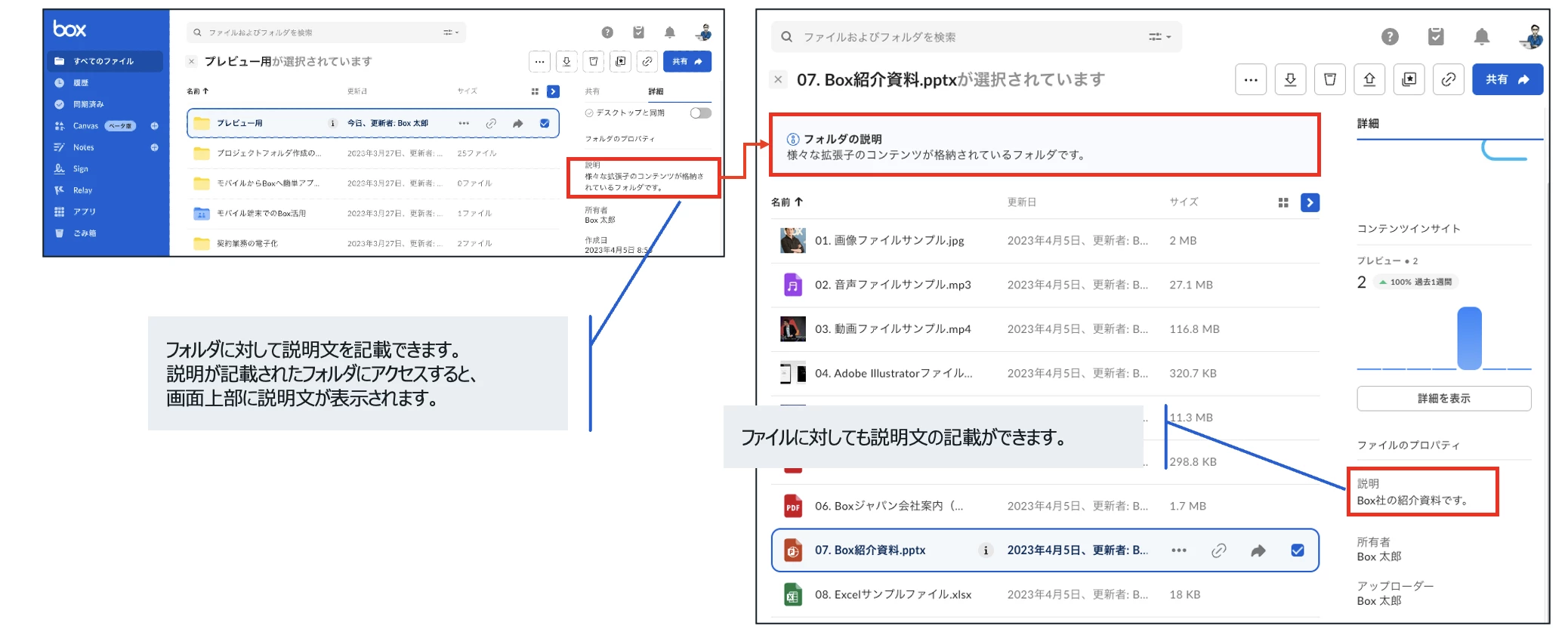 Boxを活用していると、非常にたくさんのフォルダが生成されていきます。他者が作ったフォルダに招待されることもあります。そのような状況が続いていくと、このフォルダってなんだっけ?とわからなくなってしまうこと、少なくないと思います。