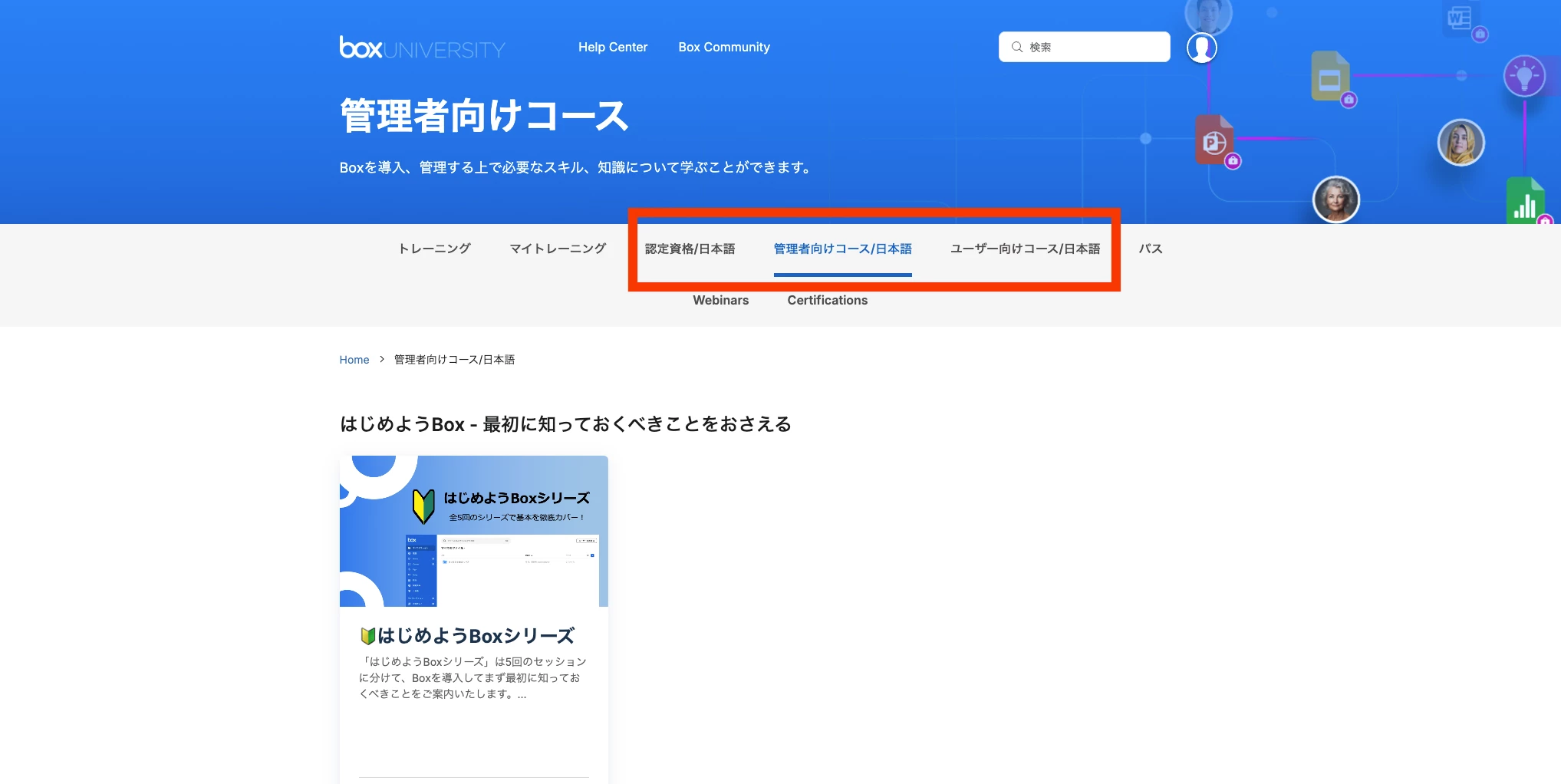 Box Universityにログインすると、日本語のコースをまとめたタブが表示されるようになります。