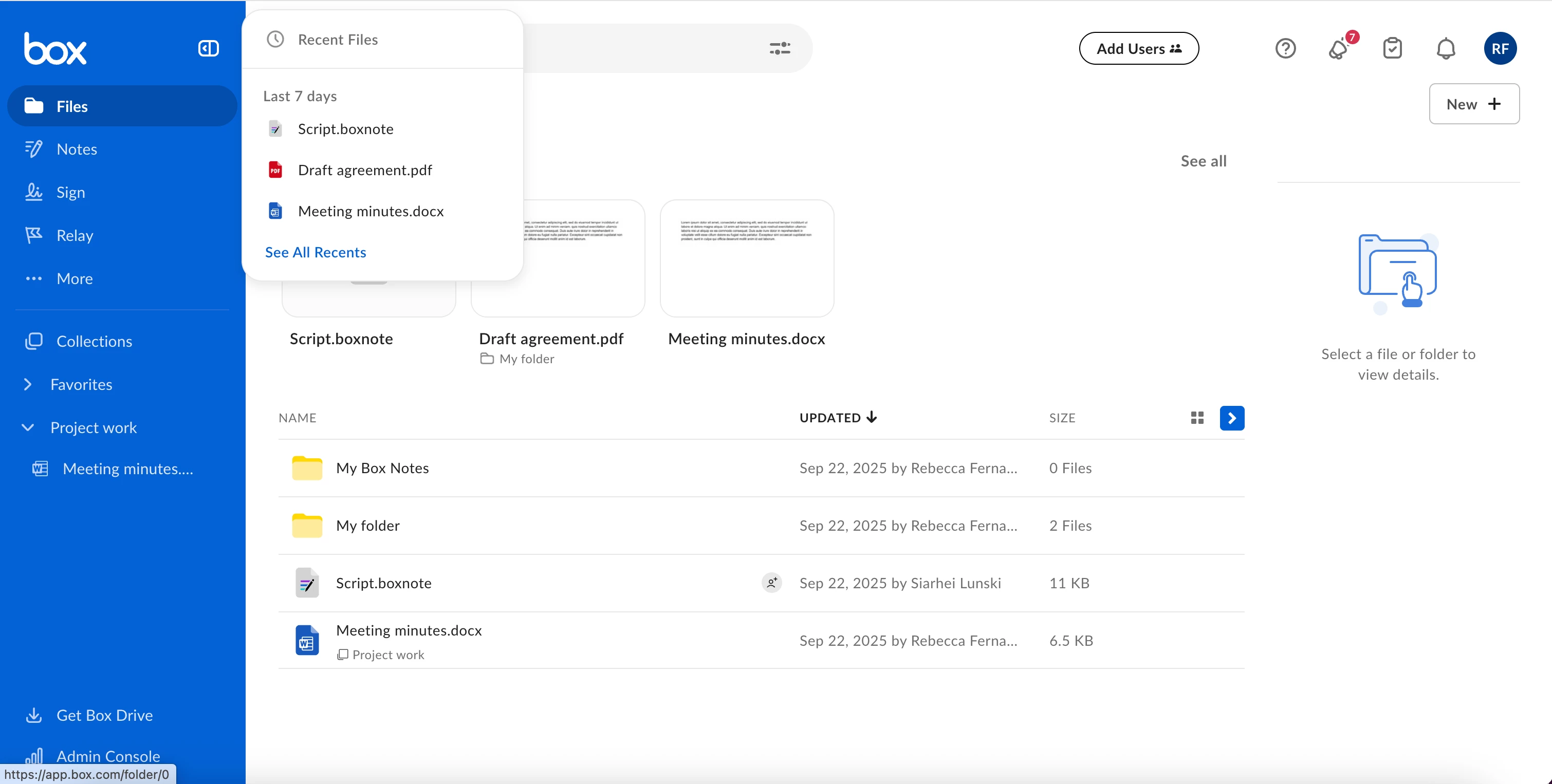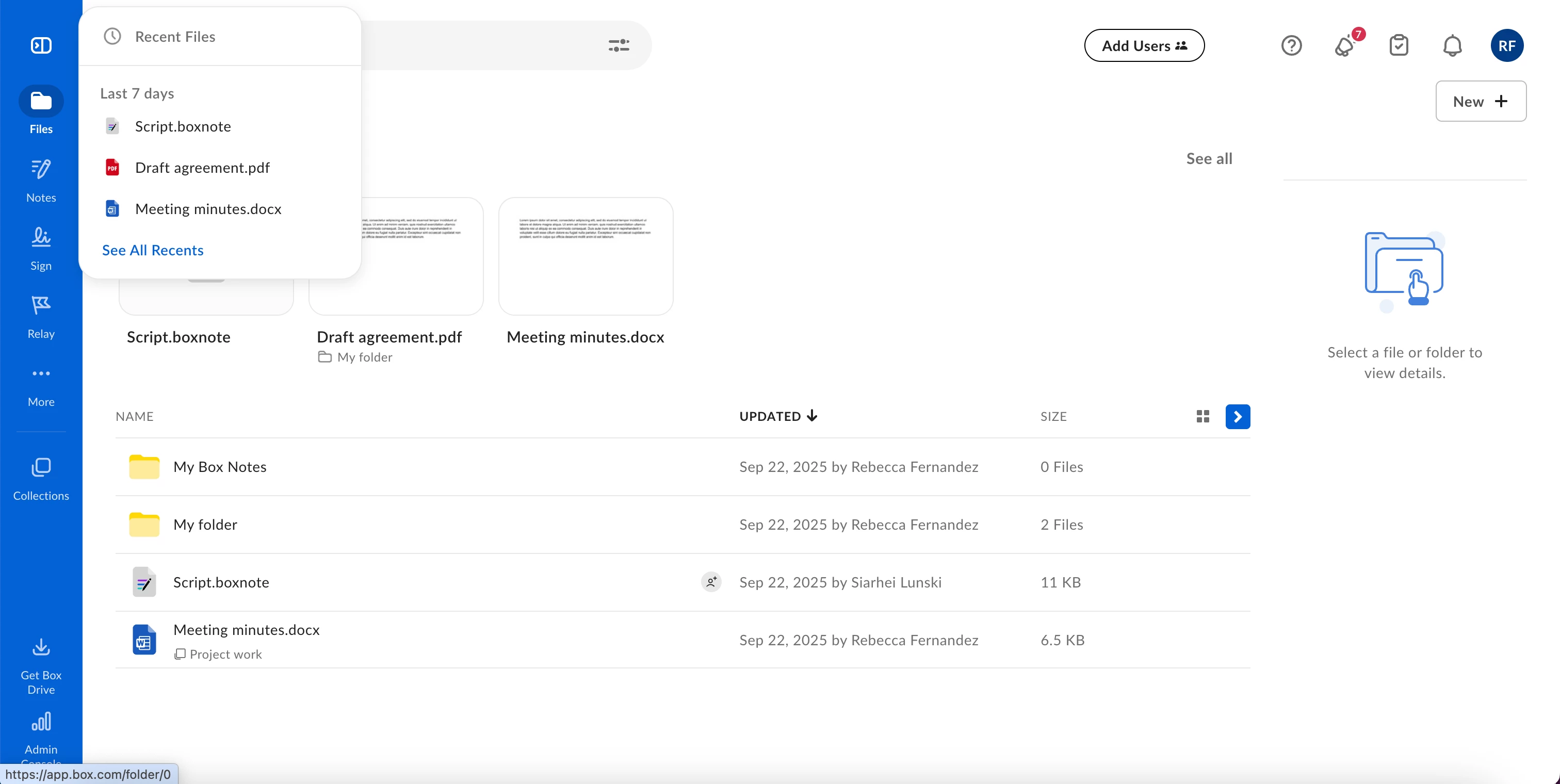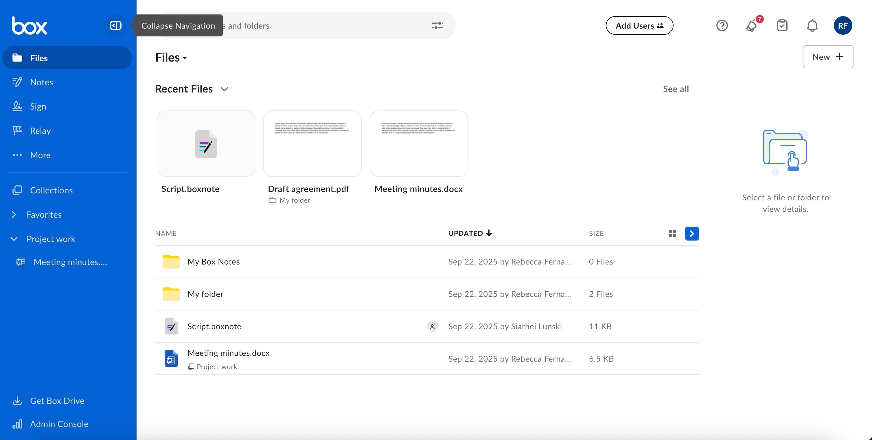 We’re refreshing the Box web experience with a cleaner, more intuitive interface designed to help you move faster and stay focused. The new updates will improve navigation, reduce clutter, and keep your most important content within reach.