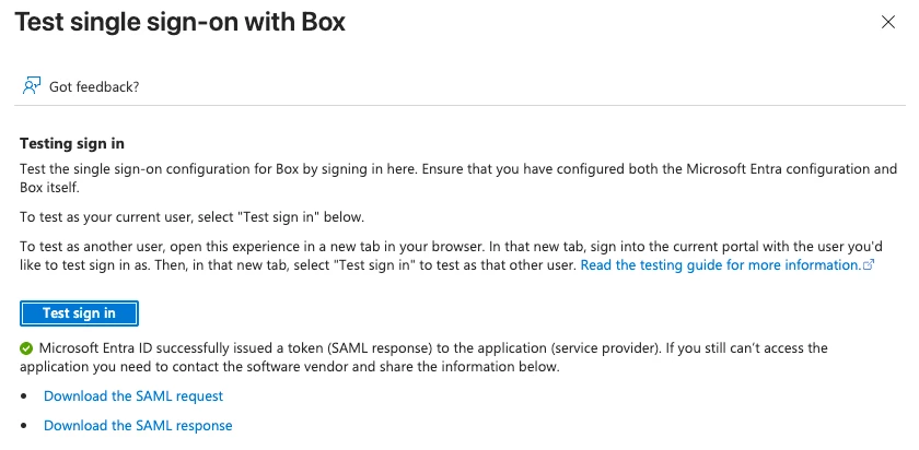 When I tested the Sign In from the Entra ID side, it worked fine. But the same user cannot sign in using the regular taphandles.box.com site.