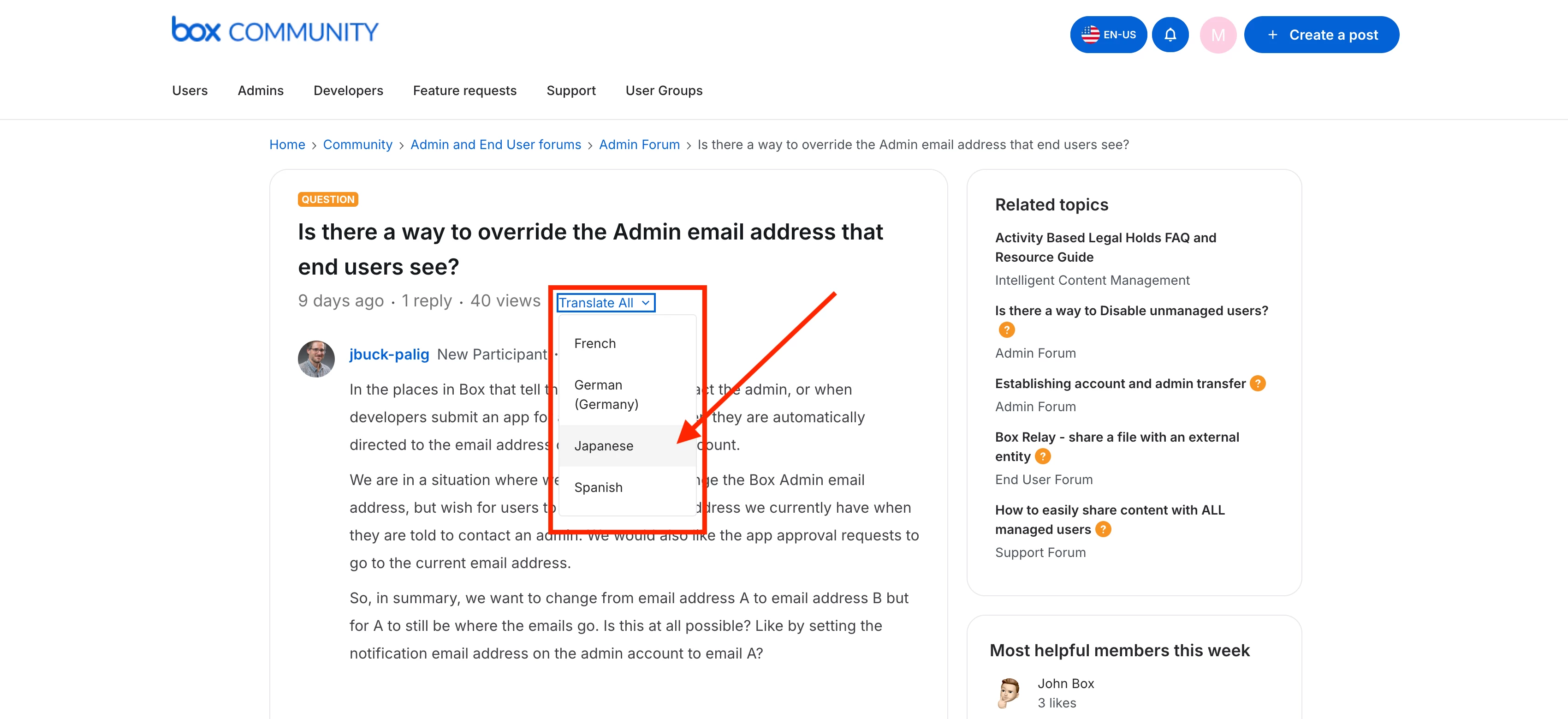 • Admin Forum:Box環境全体の設定や運用に関する情報共有やQ&A