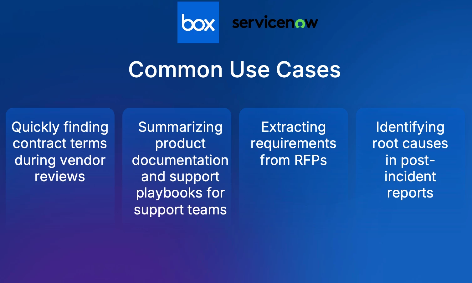 The integration allows users to perform content searches, extract key data, and generate summaries from Box files directly within the Now Assist chat. A demo showed a user asking for "confidentiality obligations" from a specific vendor contract, and the Box AI agent successfully found the relevant document in Box, extracted the precise terms, and presented them in the chat.