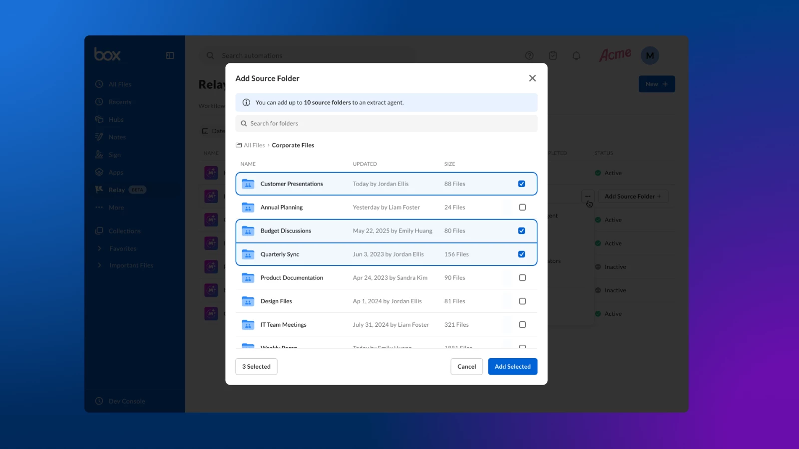 - Automate workflows end-to-end on Box with Box Relay today, and with Box Automate in the future.