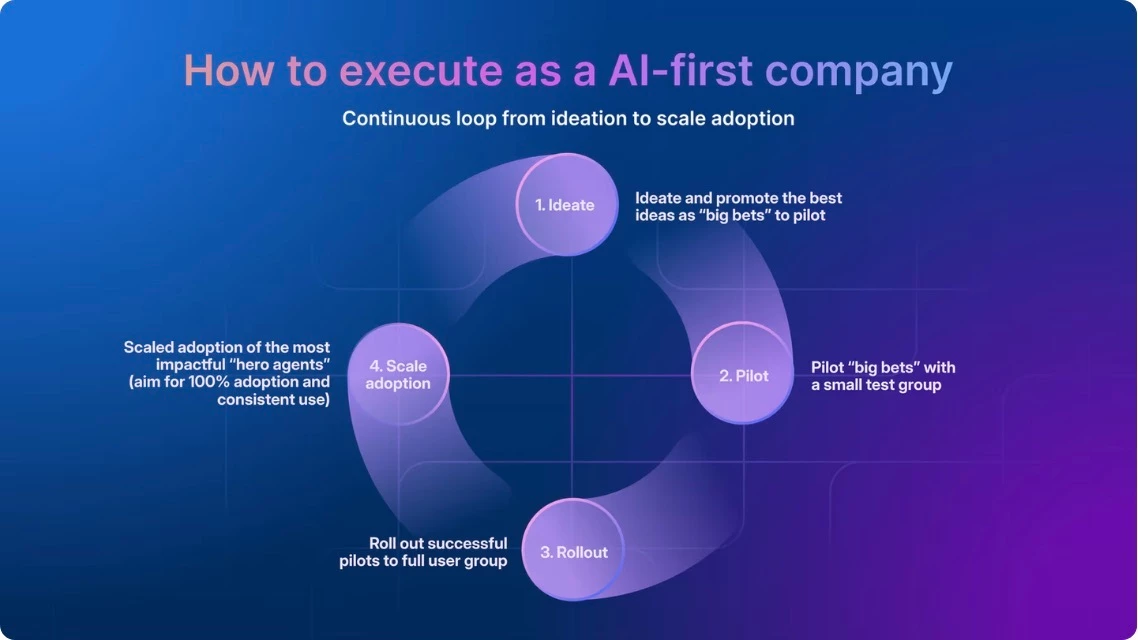 After experimenting with 100+ agents, we’ve built a four-phase framework—Ideation, Pilots, Rollout, Scaled Adoption—to turn grassroots innovation into enterprise-wide impact.