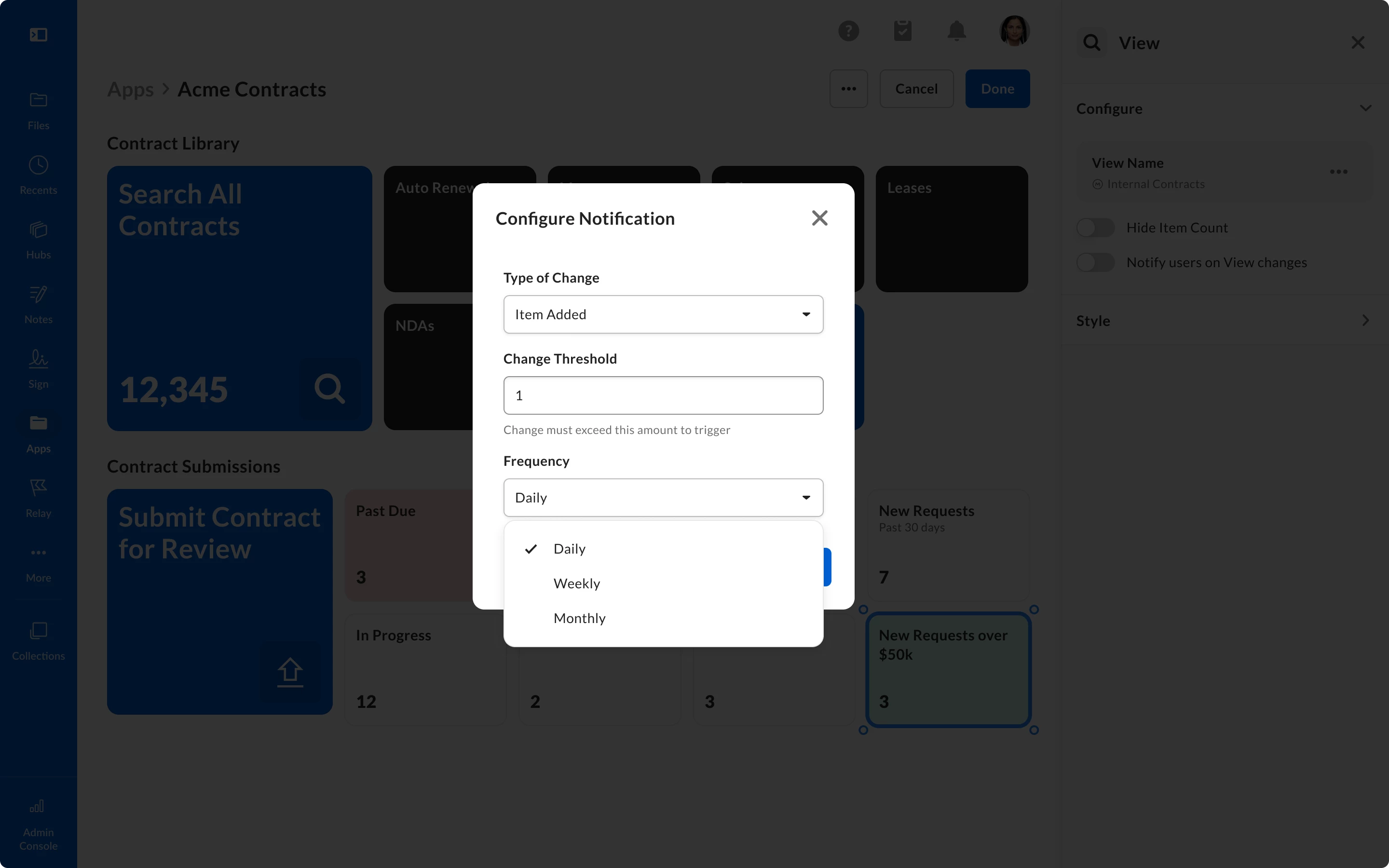With Box Apps, teams can work with information the way they prefer - using intelligent, no-code apps with custom dashboards, metadata views, and connected content workflows. This creates opportunities to customize all kinds of workflows — from managing contracts and processing invoices to onboarding employees and more.