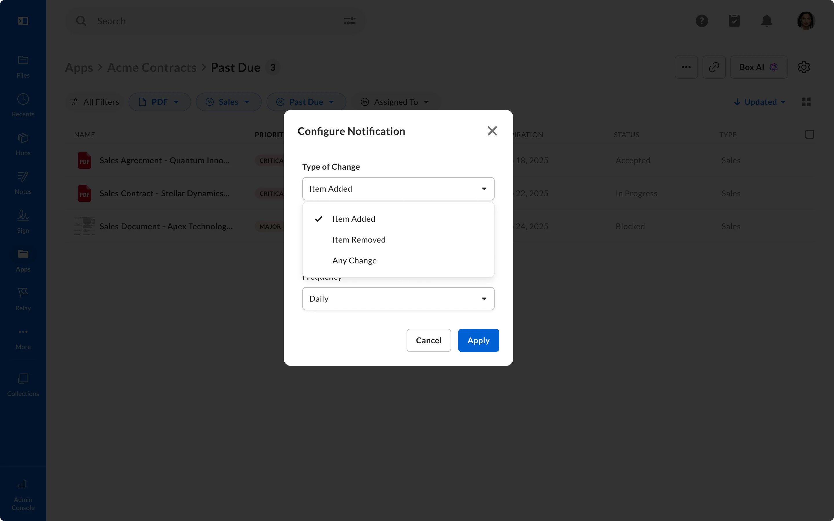 We are excited to share some additional notification capabilities Box Apps to keep users and admins informed throughout their business processes and enhance communication between Box Apps and end-users. Box Apps can now be configured to automatically alert and notify end-users when changes are made to a metadata view within an App.