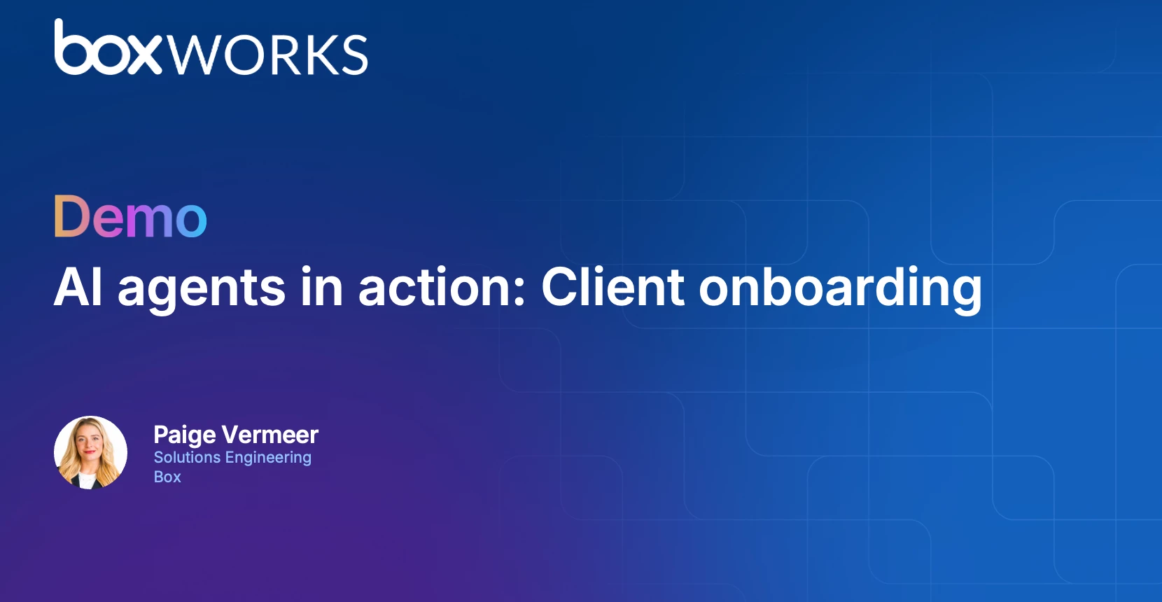 Paige, a Solutions Engineer, showcased how Box AI streamlines client onboarding workflows through automation and metadata management. Recording clip here
