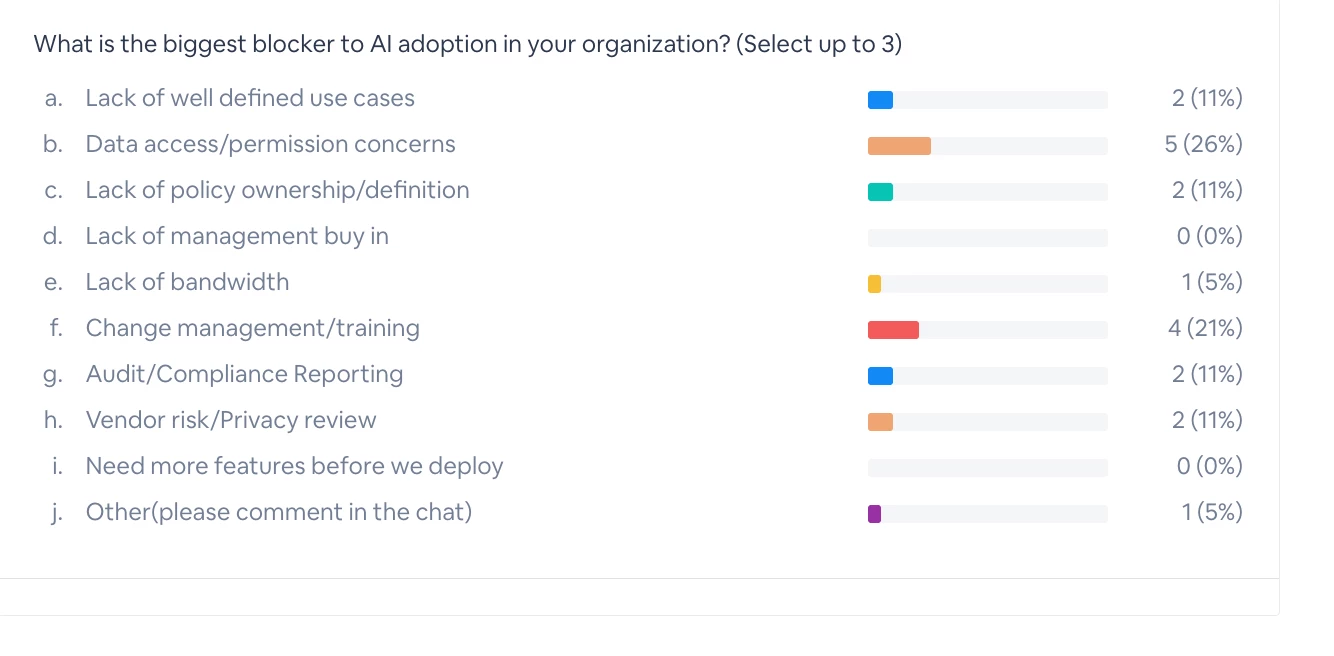Andrew conducted a poll to identify challenges in adopting AI. He pinpointed major roadblocks that many businesses face: