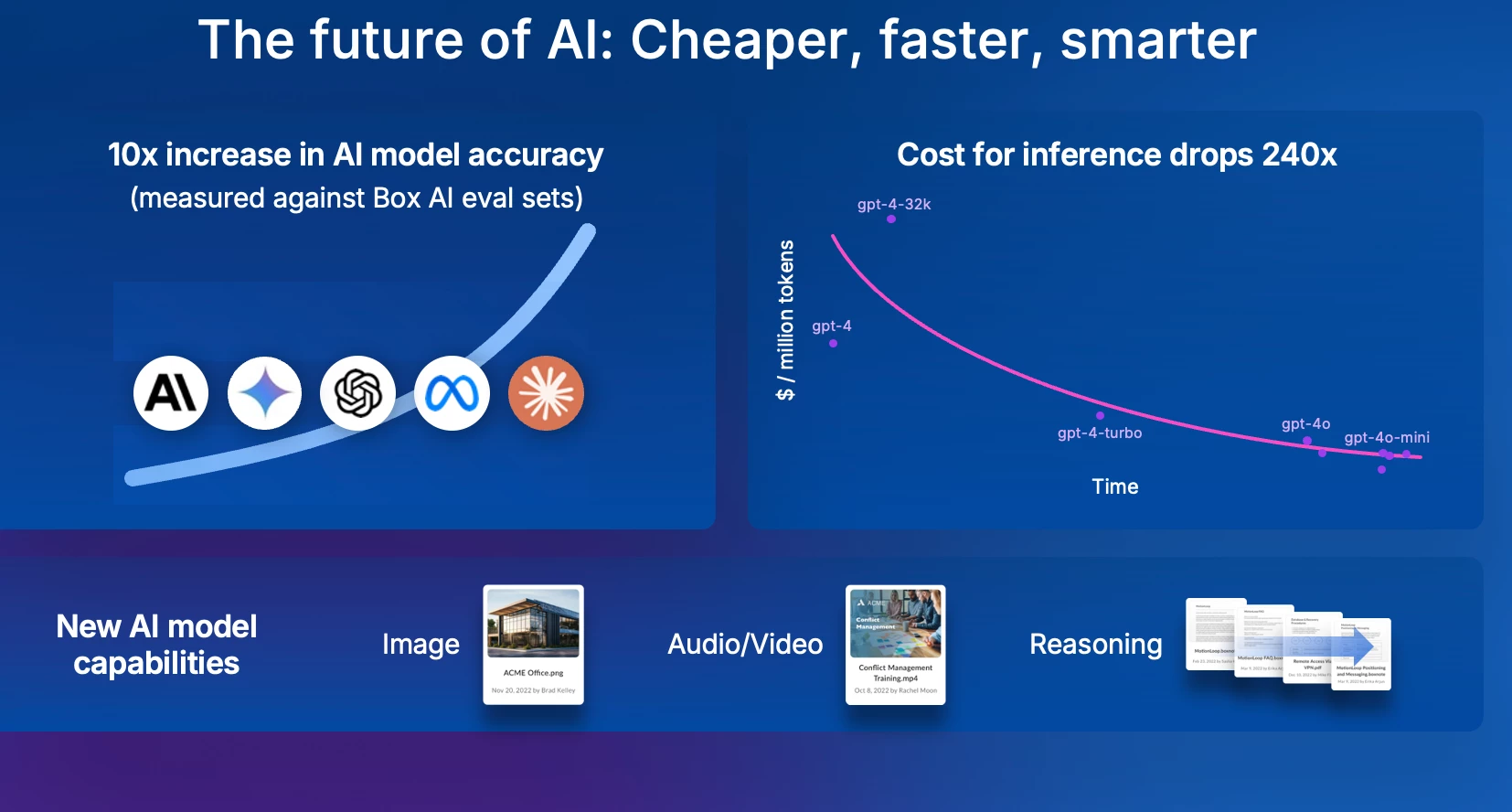 "AI is only getting cheaper, faster, and smarter as many on the call know. Today, we have models from OpenAI, Anthropic, Google, Meta, and more that overperform on key benchmarks compared to models released just months ago."