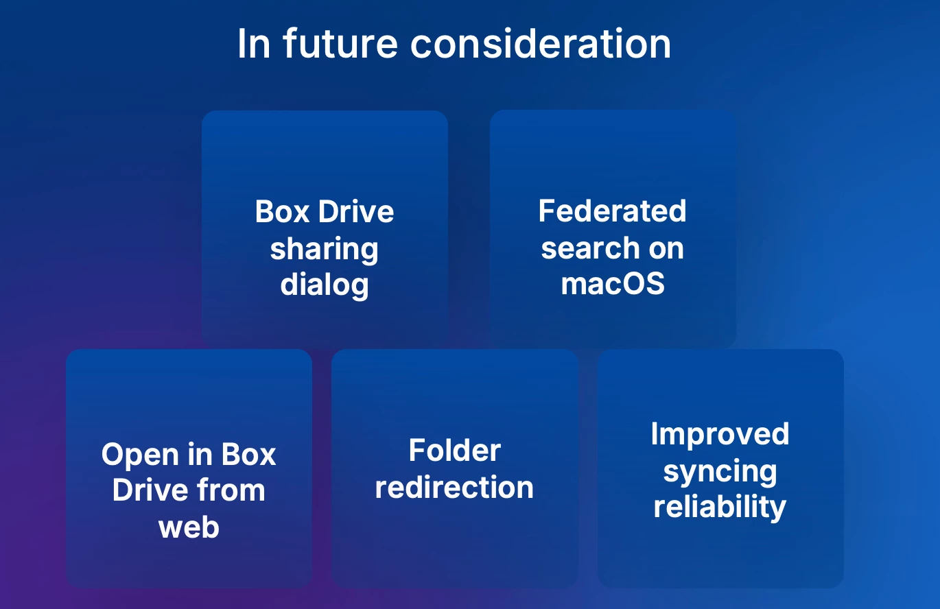 Federated Search for macOS: Mac users will gain the ability to use Spotlight search across Box Drive content.
