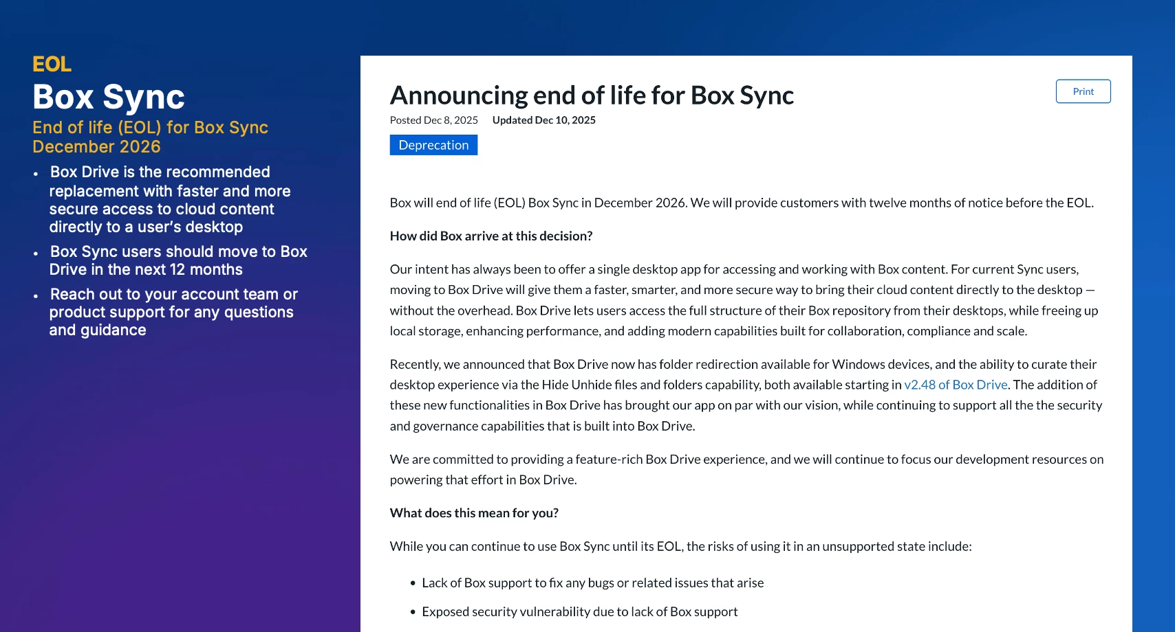 “Box Drive is faster and far more secure, so we’re encouraging all users to migrate.”