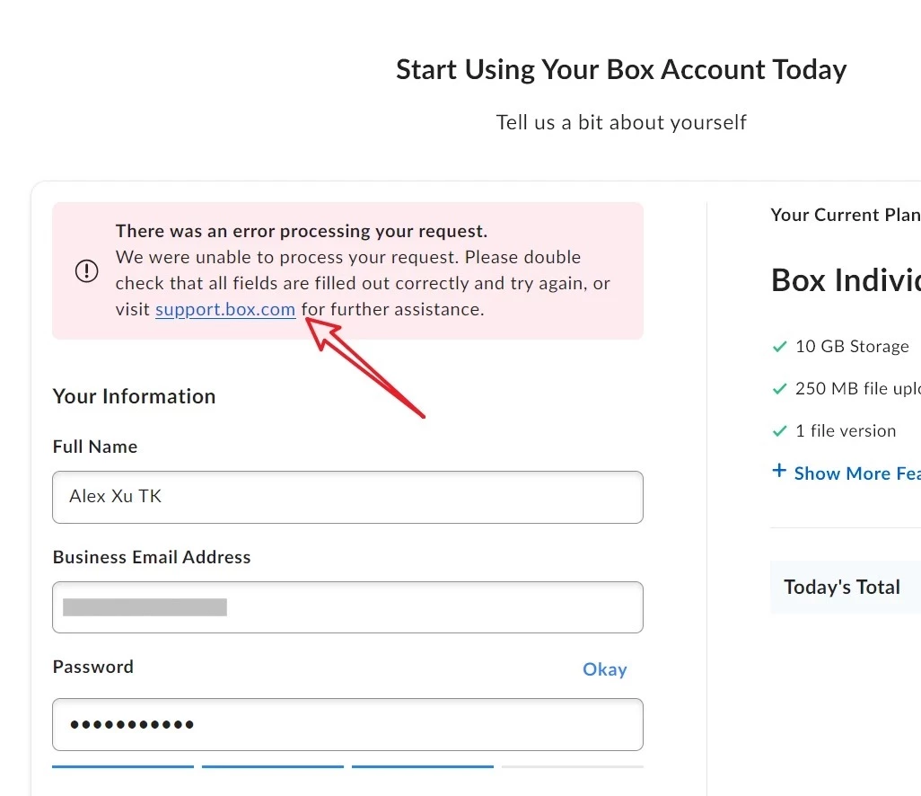 👋 Hi ​@John Lee, welcome to the Box Community! I’m sorry to hear you experienced an issue while signing up.