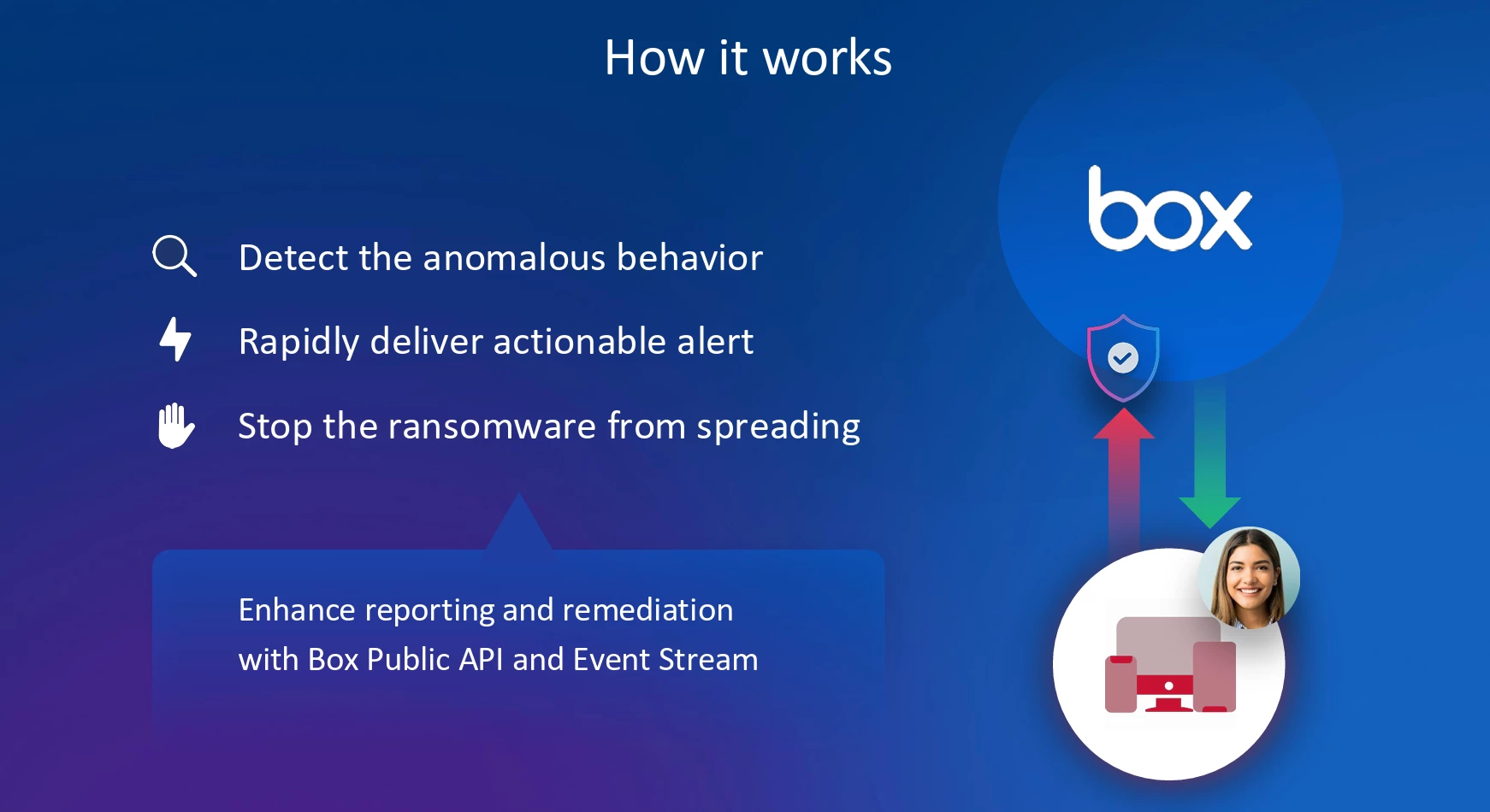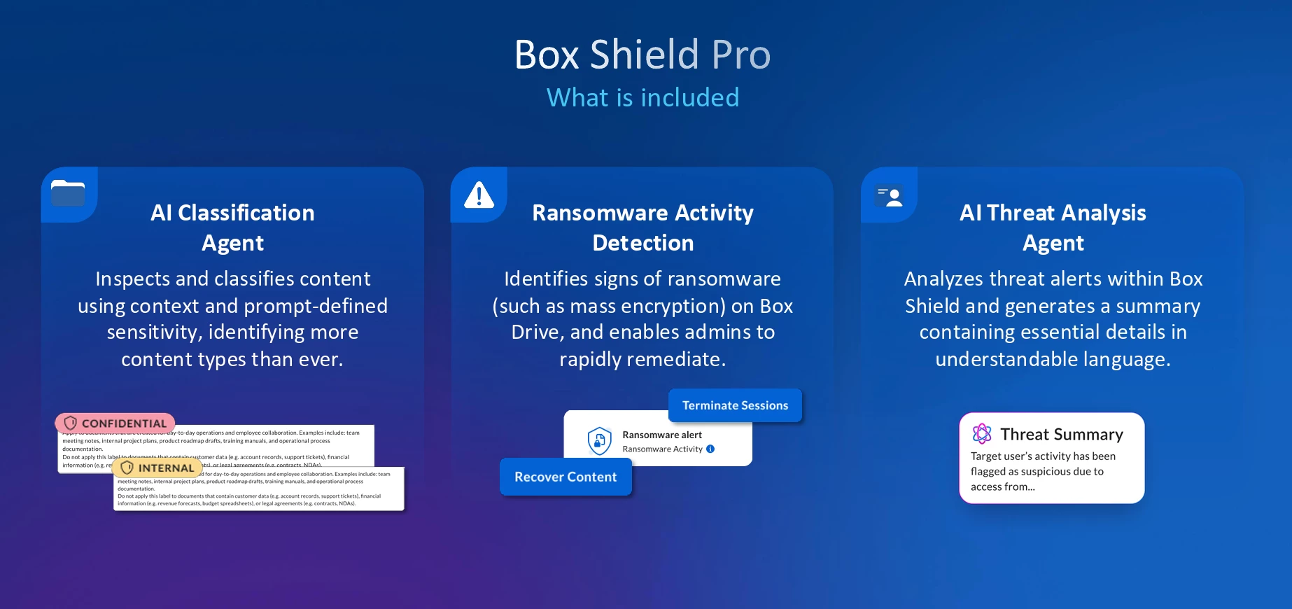 A feature of Box Shield Pro is its ability to detect and respond to ransomware threats.