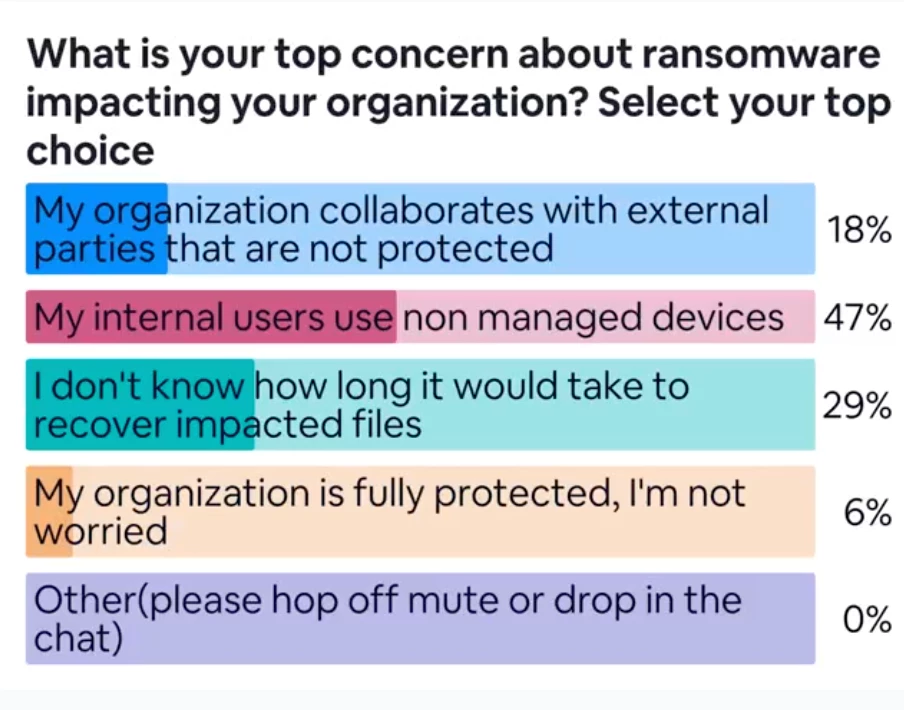 “And while people are answering this poll , I actually just wanted to call out the the recovery task that we just , ran , for about 4,500 files already finished . And so all those files are actually now back to a , kind of their previous state . Our recovery tool is pretty fast , and so , and we can handle scales from , you know , 5,000 files all the way to 50,000 files to 500,000 files”