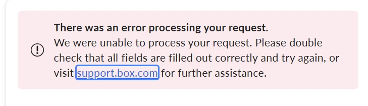 I am getting a processing error when trying to open an account to access a file that a customer shared with me.