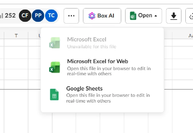 Hi, I'm having issues where I'm not able to edit Microsoft Excel files using the Microsoft Excel under the open dropdown, as the option to open in Excel Desktop is greyed out. Microsoft Excel for web and Google sheets are not greyed out and work, but I prefer to use the first Excel under the open dropdown. This is occurring with all Excel files for me, but is not a problem for other users. I talked to someone in support and they confirmed that it should be working,