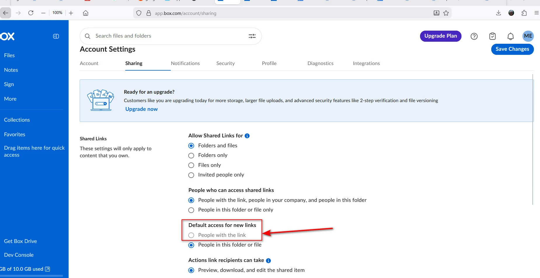 In a newly created folder, when I go to create a Shared link, there is no option to share with People with the link (however, the other two shared options of People in your company and Invited people only are there). What can I do to get the option back of sharing with People with the link?