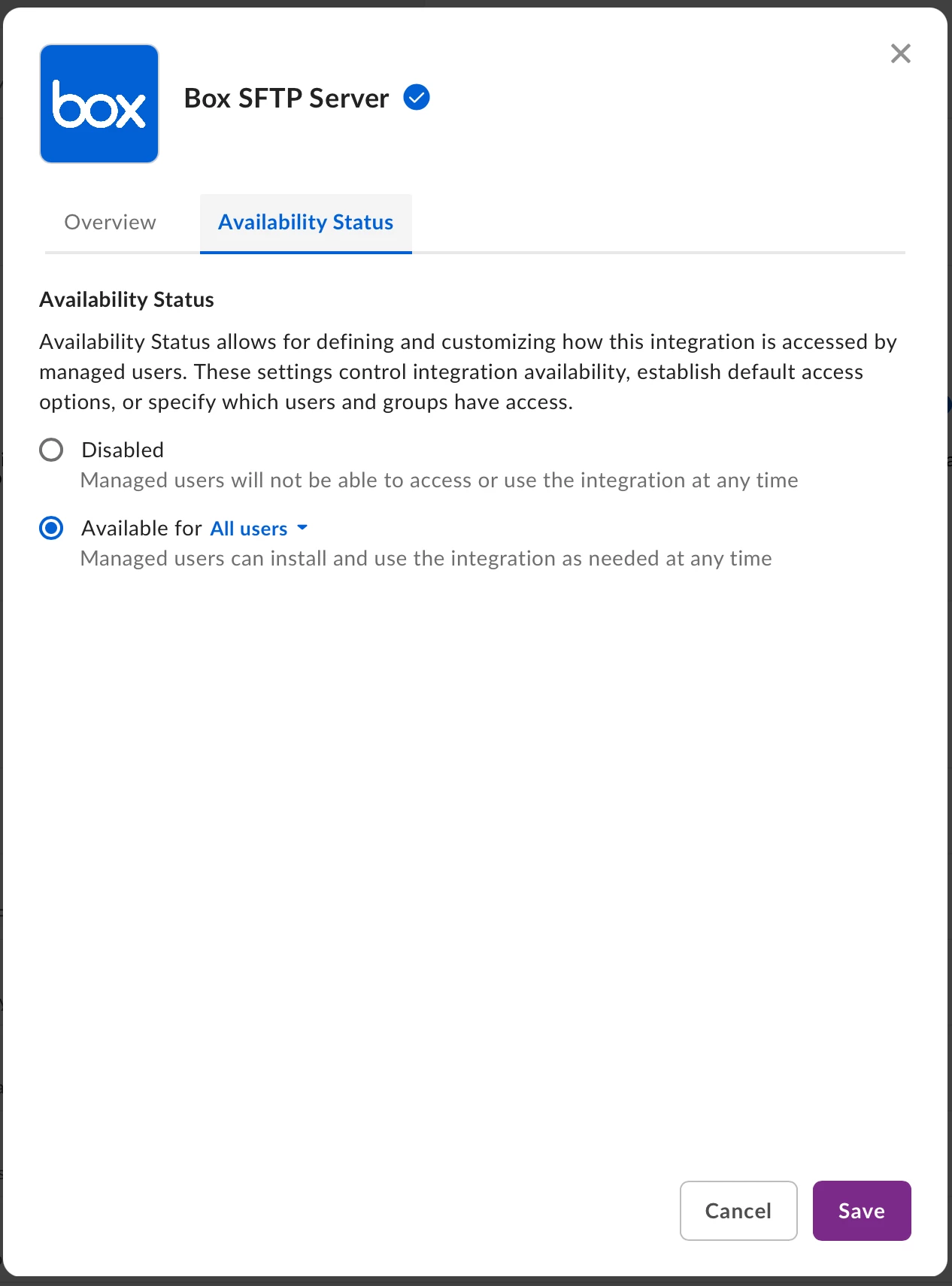 I see that there is an official Box SFTP Server showing in the integrations under the admin console now.