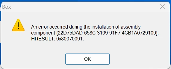 I'm trying to install Box Drive in a Dell XPS laptop with Intel Ultra 7. installation keeps failing with below error:
