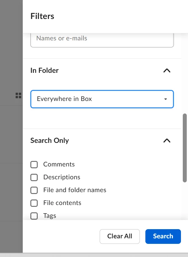Please help me fix this. The search is completely nonfunctional at this point. This is the main barrier preventing me from recommending Box to my entire team.