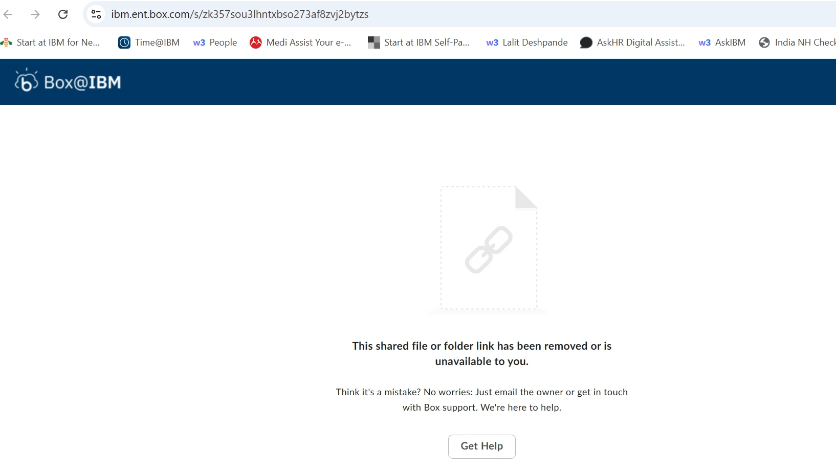 While trying to access the below Box link meant for IBM new employees update Bank Declaration, National ID and Tax Regime, I am seeing the below error (also, image attached) on the webpage and unable to proceed.