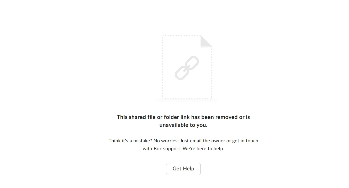 To access this Box content, please reach out to the sender/owner to either invite you to the folder or change the shared link access to “People with the link.”