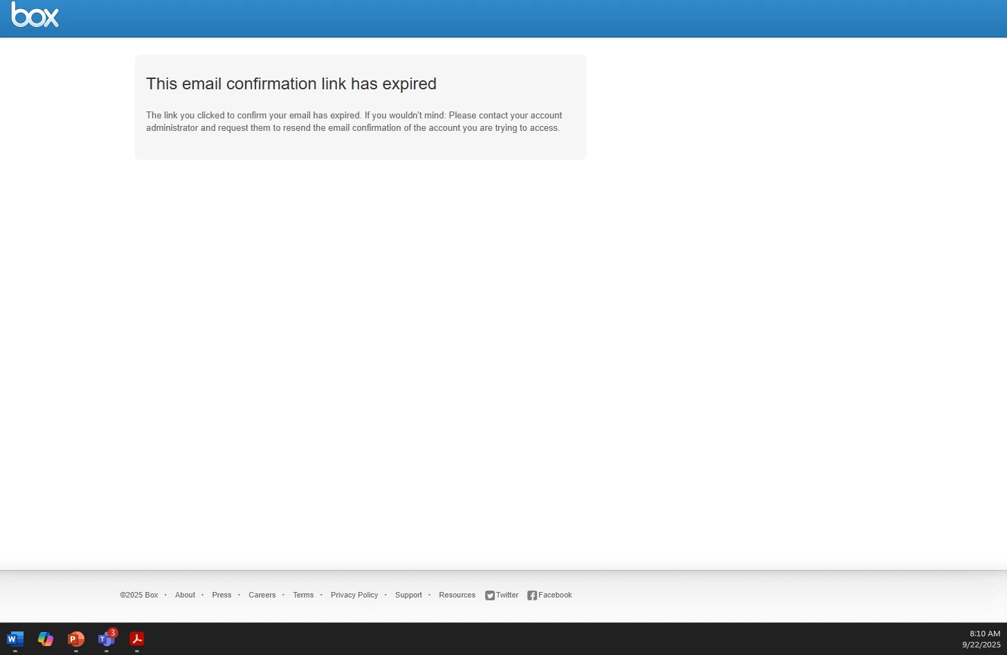 I am unable to verify my email. I get the email to my inbox but every time I click the link, I receive this message: