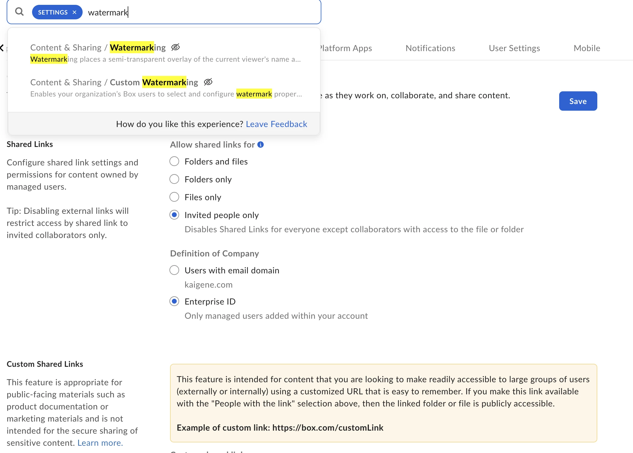 And no active watermarking menu at Contet&Sharing section.